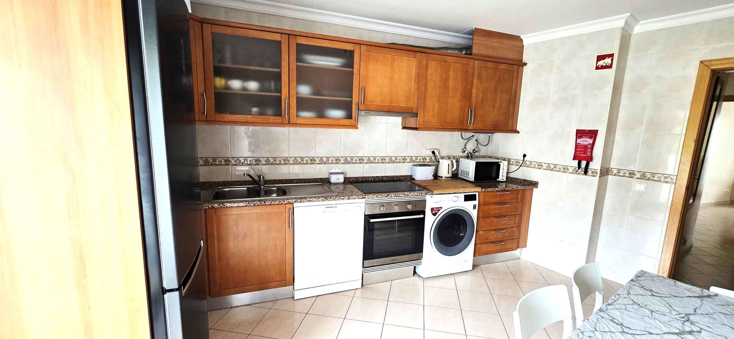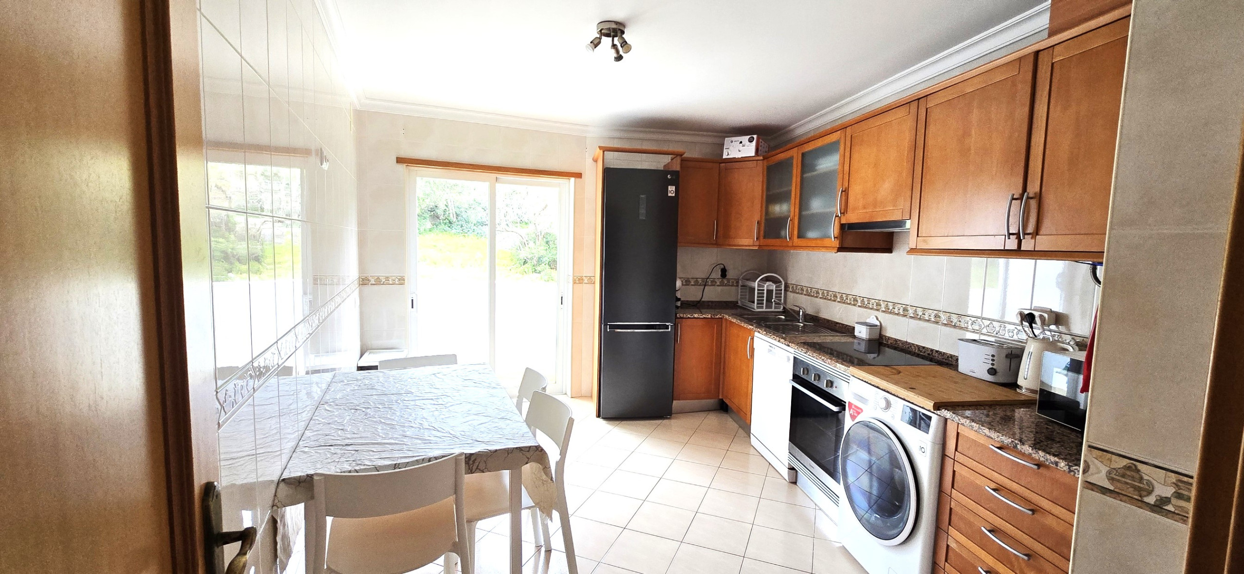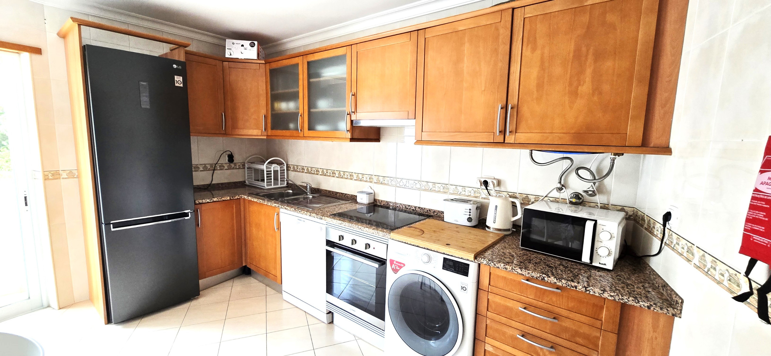 The kitchen is equipped with, electric cooker, fridge, freezer, microwave, oven, washing machine, kitchen utensils, "Dolce Gusto" capsule coffee machine, toaster and kettle. This accommodation is ideal for holidays with family or friends.